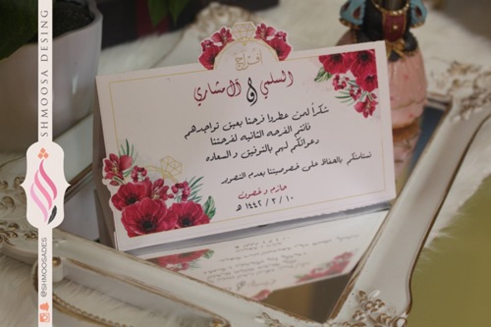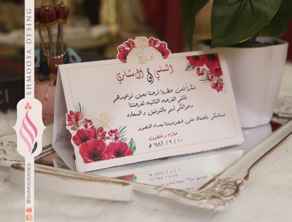 من خلال كروت الطاوله تقدري تعطي رسالتك لضيوفك بالشكر لتبيه الدعوه
