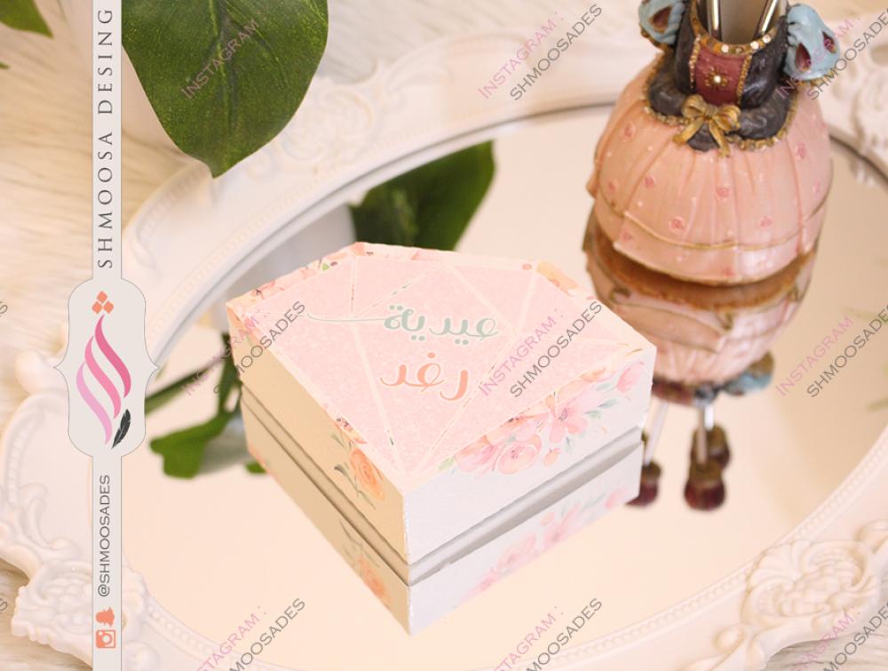 عيد الورد ( بوكس جوهرة العيد )الثيم غير مركب و يحتاج الى تركيب و لصق دبل فيساضافة الاسم اختياريمقاس الثيم 8.2 سم * 11.5 * 2.5 سم